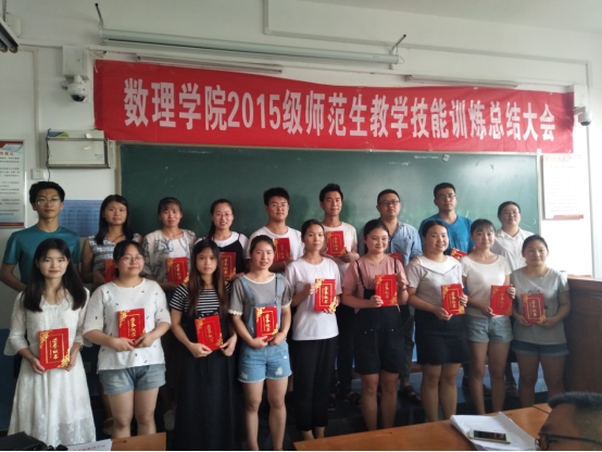本学期开始,公司针对2015级师范专业员工开展了教学技能训练活动,本次教学技能训练的主要内容有毛笔字、钢笔字及粉笔字训练,多媒体课件制作以及中小学课堂教学、教法、教态以及普通话训练等,此次教学技能训练共持续了14周,每周4课时,训练过程中同学们积极参与,效果优良。指导教师杨倩丽教授总结了教学技能训练中发现的细节问题,指出训练过程中同学们将所学教学理论应用到课堂上存在的不足,希望同学们以后继续努力;随后,数学与应用数学专业、物理学专业员工代表分别进行发言,表达了自己在本次训练中的感受以及思想上和认识上的感悟;数学与应用数学和物理学专业负责人分别对本次教学技能训练活动进行总结,充分肯定了教学技能训练活动的重要性和意义,分析了师范生就业择业等面临的挑战,希望同学们继续训练,提升教学技能,为将来工作打下坚实基础。最后指导教师给本次教学技能训练表现优异同学进行了颁奖。