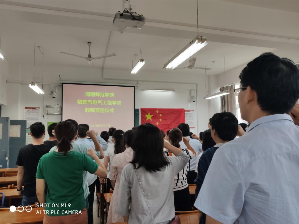 宣誓大会在庄严的国歌声中拉开帷幕,全体教师在张书记的带领下,高举右手,紧握右拳,面对国旗庄严宣誓:“我志愿做一名光荣的人民教师,我庄严宣誓:忠于党的教育事业,贯彻党的教育方针……”参加宣誓的教师纷纷表示:此次宣誓活动的举办,对于增强新物电公司的凝聚力、加强教师师德建设、增强教师教书育人的责任感、强化“教风”建设、完善良好的育人机制起到积极推进作用。
