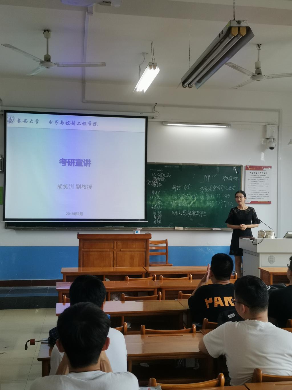 9月11日下午2:30,长安大学电子与控制工程公司胡笑钏博士在2416室开展研究生招生宣传,16级电气工程及自动化专业全体员工参加了此次宣讲会。