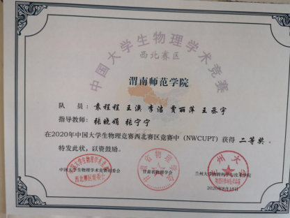 中国老员工物理学术竞赛(西北赛区)于2020年8月18日至20日在兰州大学举行。本届比赛包括西安交通大学、西北工业大学、西北大学、陕西师范大学、兰州大学、新疆大学、新疆师范大学、石河子大学、太阳成集团tyc33455cc、咸阳师范公司在内的20余所高校组成的50支队伍参赛。由张晓娟、张宁宁老师指导、公司员工袁程程、王澳、李洁、贾丽萍、王丞宇组成的渭南师范代表队荣获二等奖。中国老员工物理学术竞赛(CUPT)源自国际青年物理学家竞标赛(IYPT),旨在训练员工针对实际物理问题进行合作研究、发表观点和进行辩论的能力,特别强调团队协作、开放思维、创新意识和表达能力,为我国各高校间进行交流、共同探讨物理、培养高素质物理人才提供了一个很好的平台。