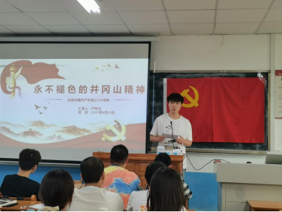 随后围绕“坚定执着追理想、实事求是闯新路、艰苦奋斗攻难关、依靠群众求胜利”四个方面,深刻阐述了学习井冈山精神的重大意义,呼吁广大青年必须勇敢肩负起时代赋予的重任,坚定四个自信,传承红色精神,努力在加快发展中国特色社会主义和实现中华民族伟大复兴中国梦的实践中放飞青春梦想,让井冈山精神散发新的光芒!