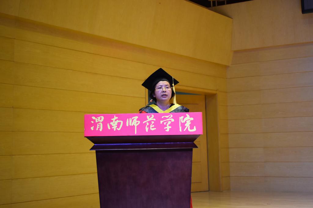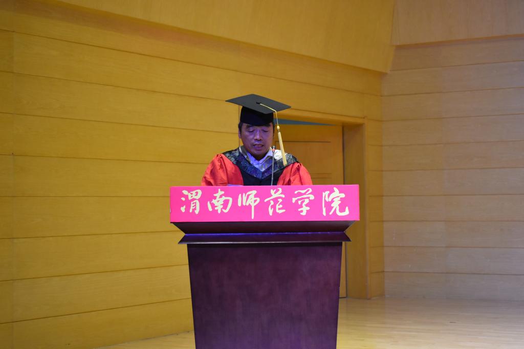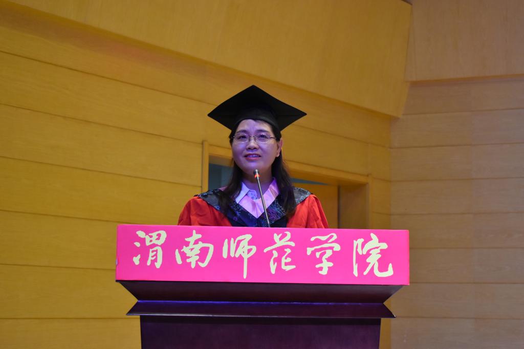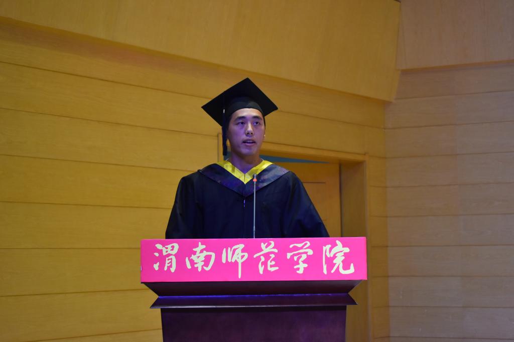 教师代表郭宝会博士建议同学们争当民族复兴的放大器、做好人品的定积分、持有一颗感恩和敬畏的心,祝毕业生放飞梦想,前程似锦。
