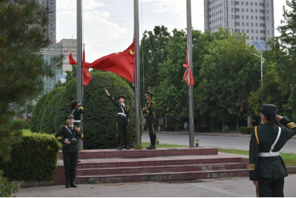 早上6点40分,升旗仪式在雄壮的国歌声中正式开始。伴随着雄壮的《中华人民共和国国歌》,鲜艳的五星红旗冉冉升起,全体师生向国旗行注目礼。升旗完毕,党员宣誓正式开始。全体党员高举右拳,面对飘扬的国旗和鲜红的党旗庄严宣誓。铿锵的誓词激荡着每个党员的思想灵魂,举拳宣誓牢记入党初心,以入党誓词唤醒和激发党性观念,永远牢记自己的“入党初心”,始终做到信仰不移、忠诚不变、纪律不忘、本色不改。