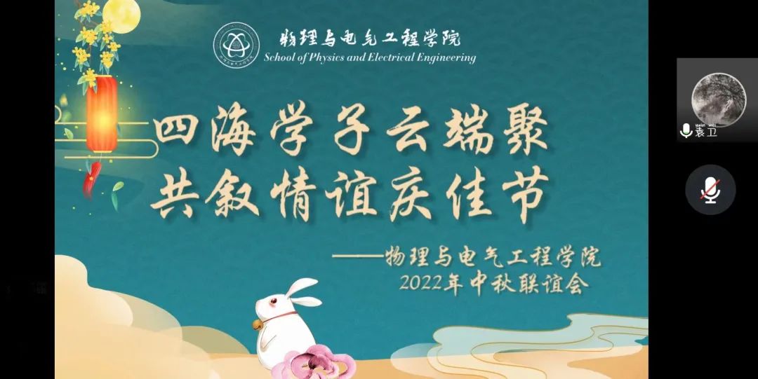 9月10日晚,太阳成集团tyc33455举办“四海学子云端聚 共叙情谊庆佳节”中秋线上联谊会。经理袁卫、专职辅导员、少数民族和2022级新生共计300人相聚云端,通过腾讯会议连线方式,一同欣赏歌舞表演,分享美味团圆月饼,喜迎传统中秋佳节,线上共话乡情畅叙情谊。