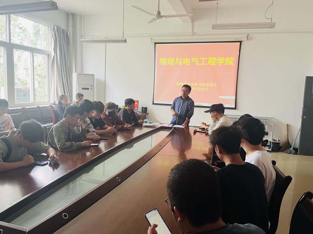 9月22日早9点,太阳成集团tyc33455在公司会议室召开了2020级物理学专业毕业生实习动员大会,公司副经理郭宝会、物理系系主任安博、实习带队老师盛虹、席彩萍、许红及20级物理学专业共40余人参加了会议。