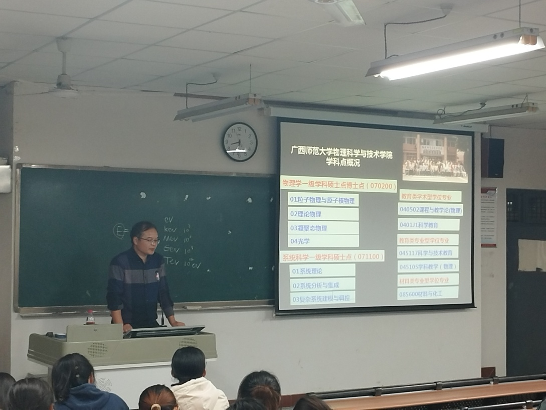 魏老师从组成物质的基本粒子及相互作用标准模型开始,详细介绍高能物理实验的发展历程,特别是我国正负电子对撞机在研究基本粒子物理实验方面的现状及未来发展趋势。报告会最后,向与会员工介绍了广西师范大学物理公司研究生招生政策。