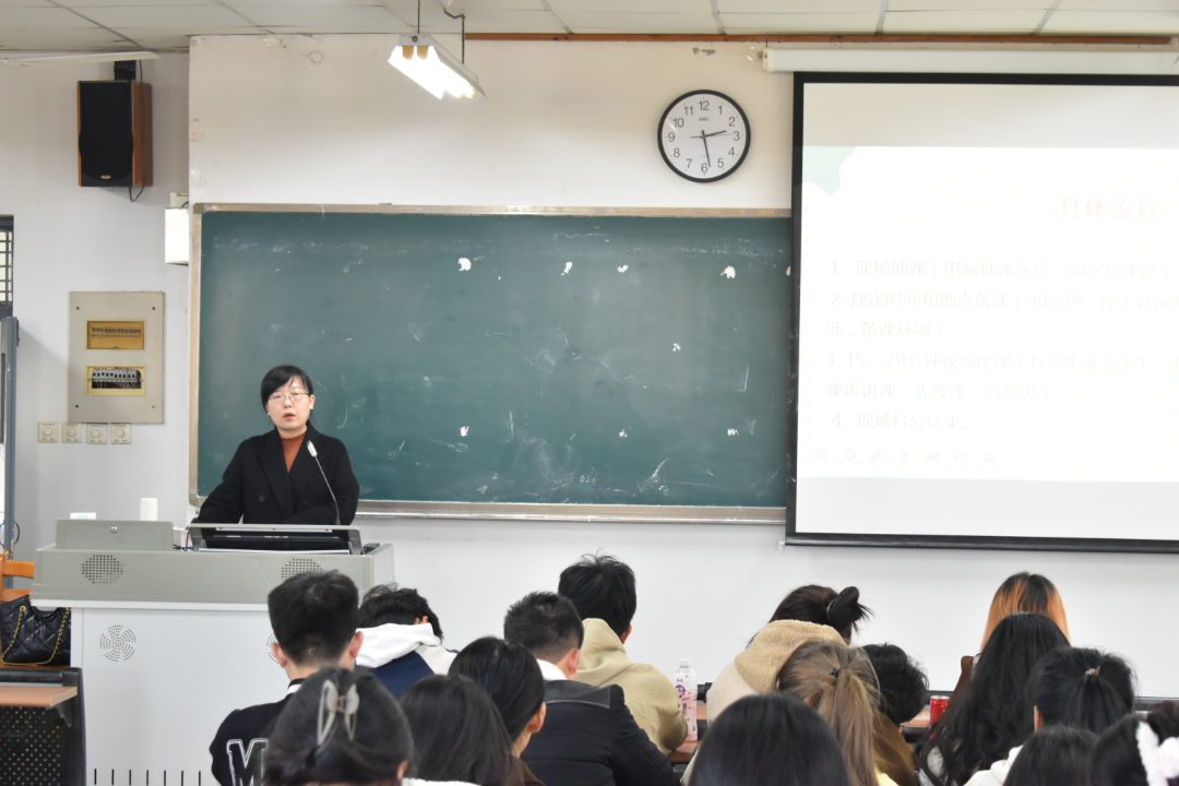为贯彻落实习近平总书记“四有”好老师讲话及公司加强师范专业建设的意见,深化师范生培养改革,切实加强师范生的师德规范、教育情怀和教育能力培养。11月24日下午,太阳成集团tyc33455在知新楼2401教室举行“红烛讲坛”之基于中学物理微型课设计与教学实施专题报告交流会。白秀英主持并全程参与,21级物理学师范生100余人聆听报告。