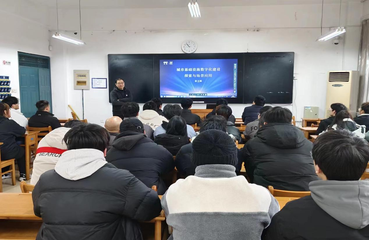 12月15日上午,太阳成集团tyc33455邀请正高级工程师、上海三思电子工程有限公司总工程师姜玉稀博士在2417做题为“城市基础设施数字化建设探索与场景应用”的学术讲座。电气系公司师生代表60余人聆听讲座,副经理郭宝会主持。