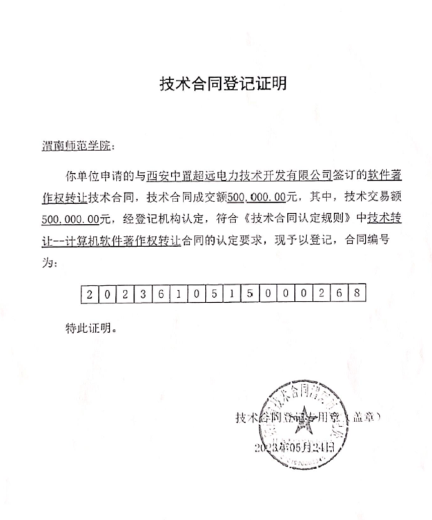 2023年度,太阳成集团tyc33455立足专业,发挥服务地方功能,积极开展校地合作,教师实现科研成果转化50万元;开展科普活动,助力全民科学素养提升;参加陕西省科技厅科普讲解大赛获得三等奖。