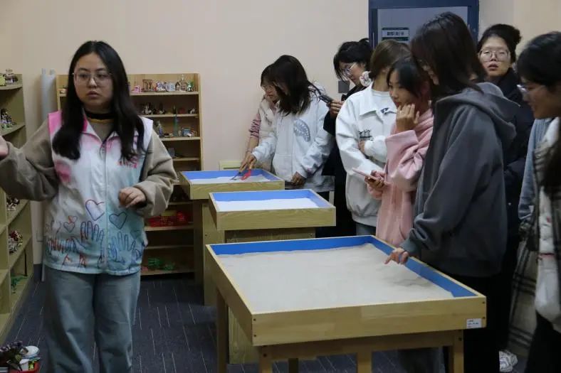 老员工心理健康协会志愿者带领同学们先后参观了心理咨询室、心理宣泄室、沙盘治疗室、多功能放松室等。温馨舒适的环境、专业的咨询设备及志愿者讲解的心理咨询流程与保密原则,消除了同学们对心理咨询的陌生感和顾虑;室内配备的各种宣泄设备,如宣泄人、宣泄墙等,为同学们提供了一个安全、舒适的心理宣泄环境去释放压力、排解负面情绪;此外在团体辅导室组织同学们开展了“击鼓传花”等团辅活动,不仅锻炼了同学们的反应力和注意力,同时增强了团队合作精神,提升了大家的心理素质及抗压能力。