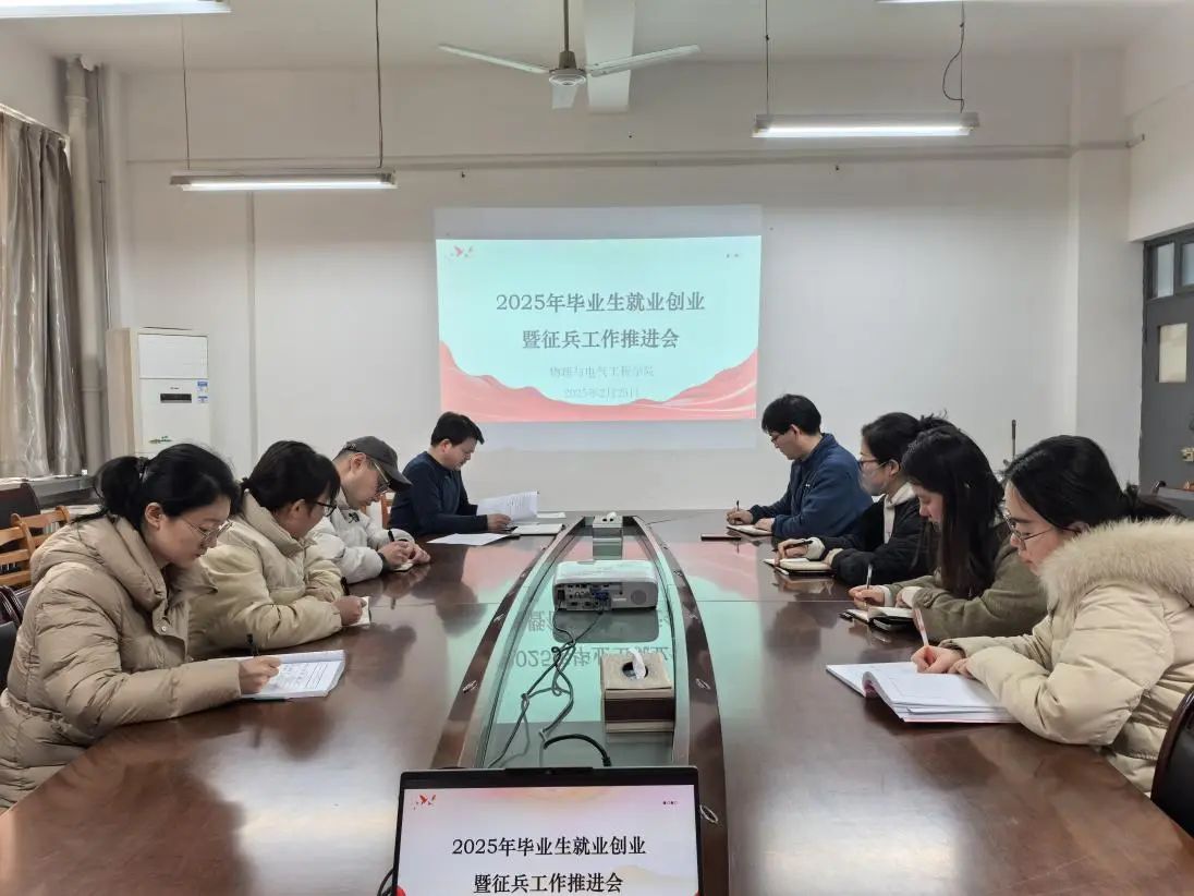 2月25日下午,太阳成集团tyc33455在2418会议室召开2025年毕业生就业创业暨征兵工作推进会。公司党总支书记袁卫、经理张修兴、党总支副书记权轻舟、全体辅导员参会。